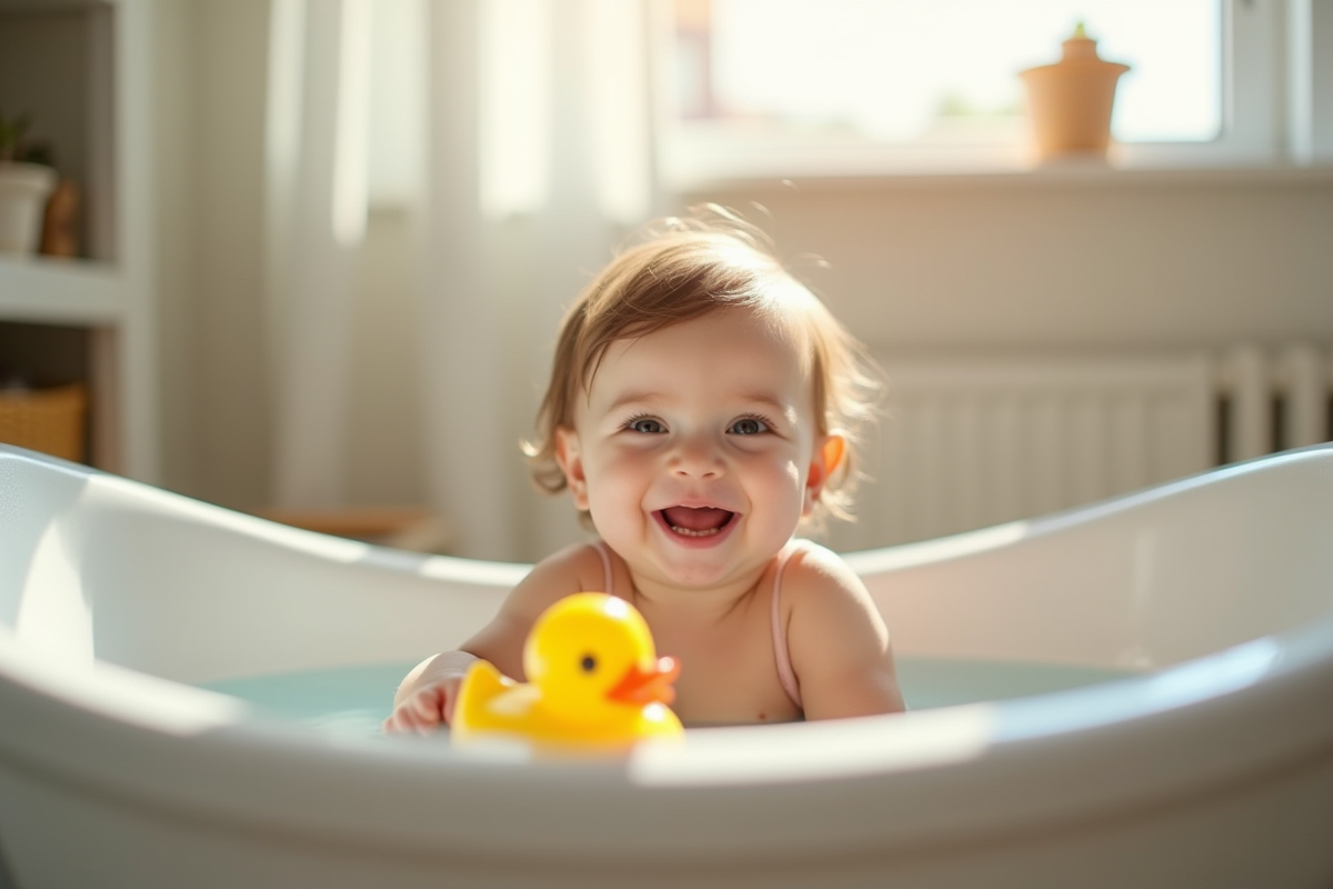 - Préparez tout le matériel à portée de main : serviette, savon doux, jouets aquatiques.
