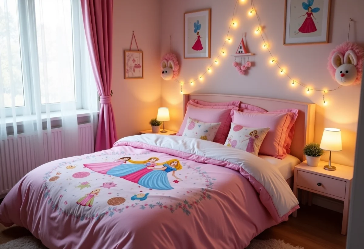 Les motifs féériques, peuplés de princesses, licornes et jardins magiques, continuent d’enchanter les petites rêveuses, apportant une touche de magie à leurs nuits. Parallèlement, le minimalisme gagne du terrain, avec des couleurs douces et des motifs épurés, offrant une ambiance apaisante et moderne, idéale pour favoriser le repos et la concentration. Chacune de ces tendances transforme la chambre en un espace unique et personnalisé.