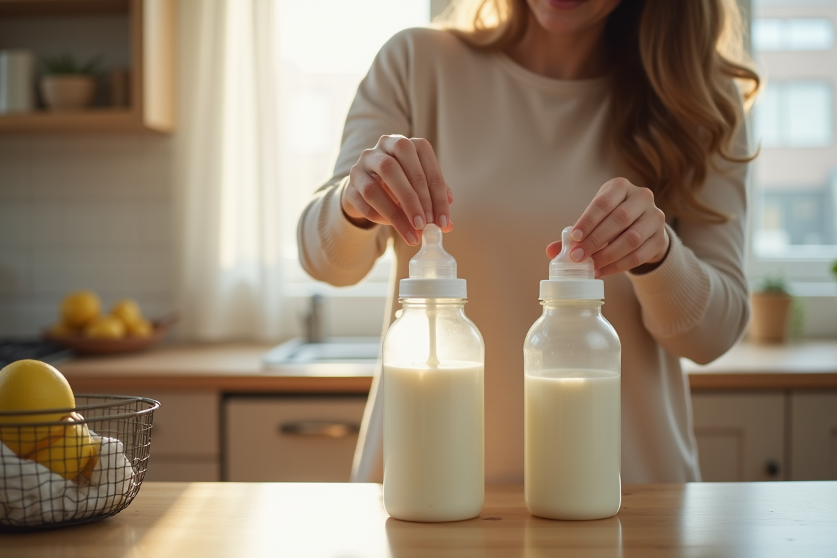 Avec l’allaitement, rien n’est figé. Plus le rythme des tétées ou des sessions au tire-lait varie, plus la production de lait maternel s’adapte. Le matin, le lait prend même une saveur hormonale différente, pendant qu’en soirée, sa formule évolue. Les familles tâtonnent : allaitement au réveil, au coucher, biberon de lait infantile le midi, ou encore mélange de laits collectés à différents moments… Chaque mode de gestion correspond à ses propres enjeux.